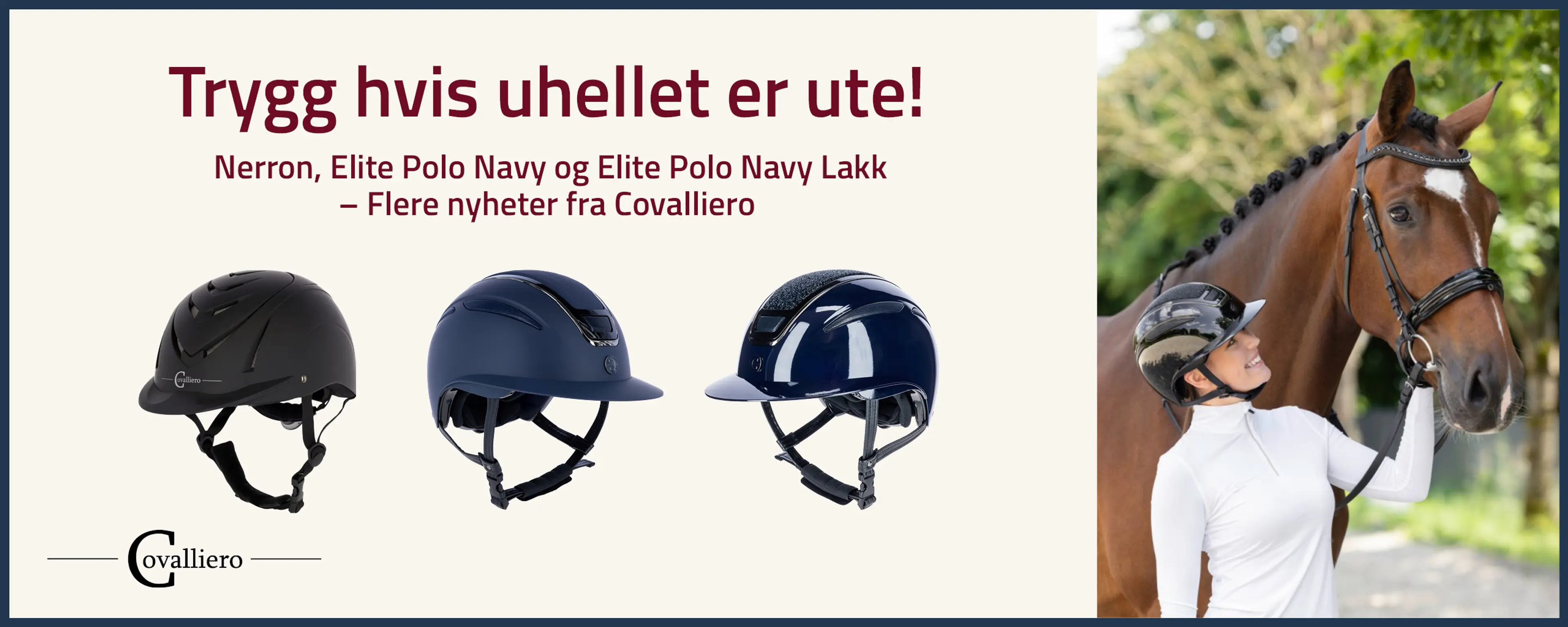 Nyhet!Covalliero Ridehjelm Elite Polo Lakk NavyElegant ridehjelm med poloskjerm, blank overflate og fine detaljer i glitrende Navy! 2.199,00